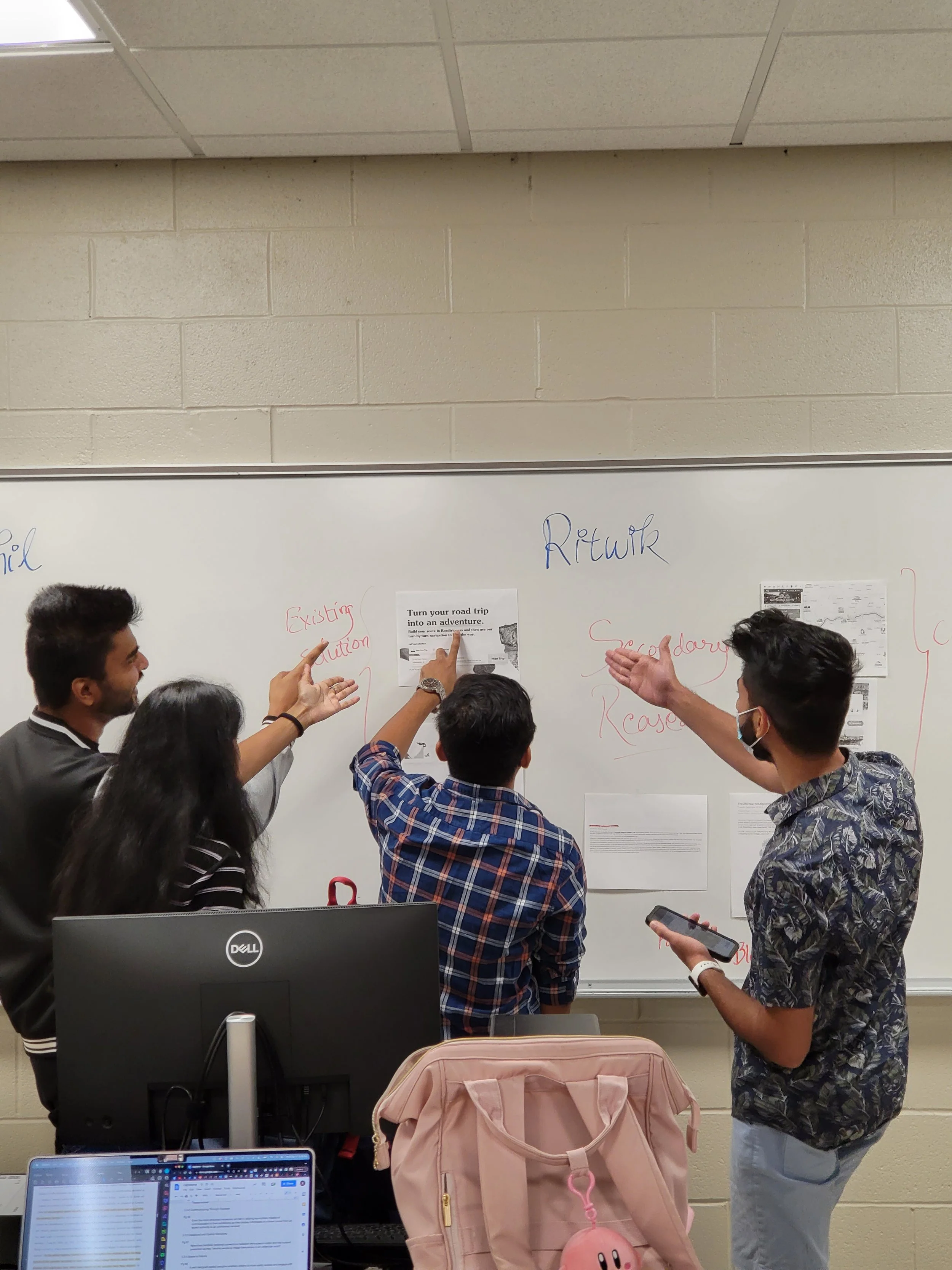 It is Week 11 and given the rigorous Gallery Walks, I changed the model a little bit so that was less energy-consuming and more open to the entire class with a “One-Q” Gallery Walk model. Similar to the weekly Gallery Walk model, but with a small twist of students not having to talk to multiple people stopping by at their whiteboards. The concept was for the student to quickly present their progress in 2 mins and just ask ONE QUESTION that they need answers to move forward in their design process. The purpose of this model was four-fold: