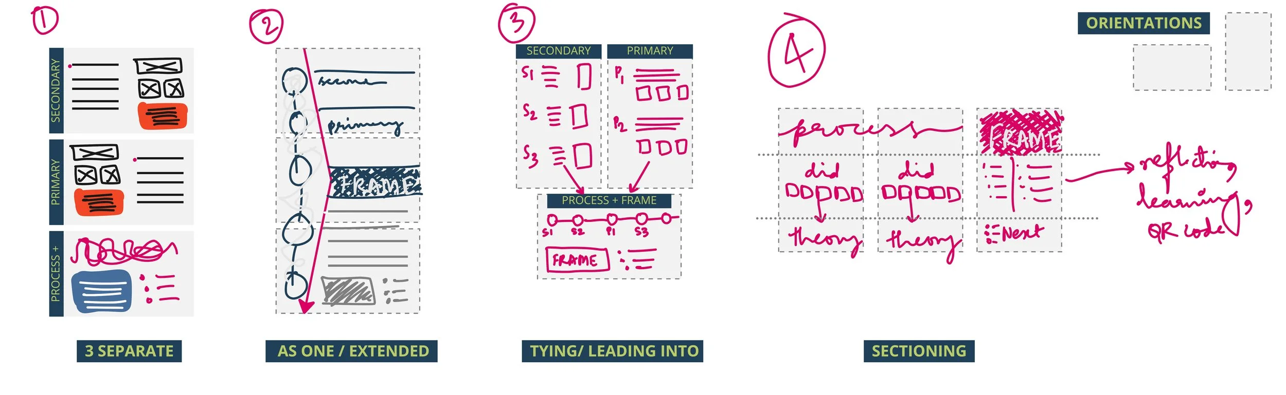 Before the final showcase, I ideated some potential ways the three A3 footprint could be used to design the presentation (as sketched int he image below).