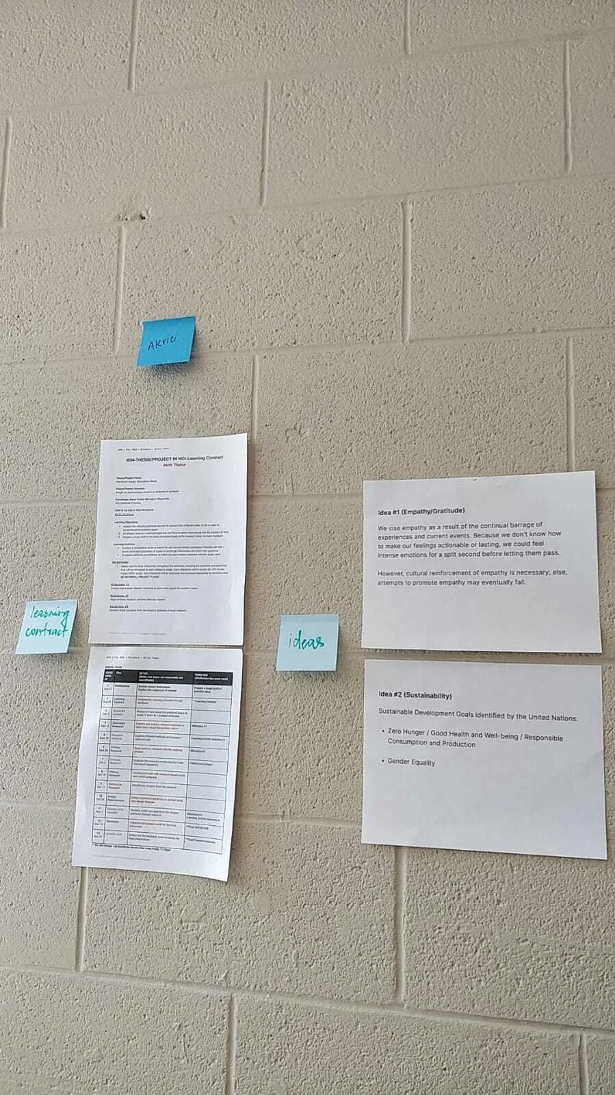 A thesis/ capstone class is designed for “individual” designers to apply their design knowledge imparted as a part of their coursework and external design practice in one project over two semesters. As the instructor of record and designer of the course, here are some of my designer intentions for why I incorporate certain practices in this class: