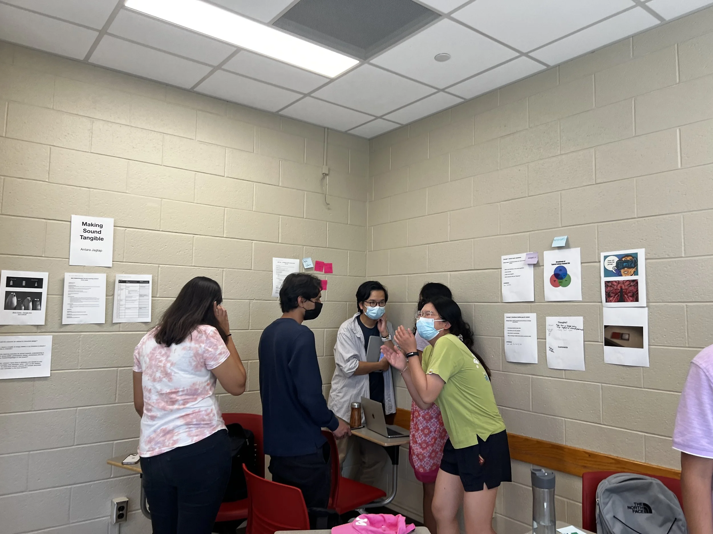 From the desk critique, they acknowledged the importance of acquiring the skill to ask and give critique to others as designers. How to politely and respectfully provide feedback on others’ work is crucial when communicating design ideas, and how understanding others’ critiques is equally important. A few students found it very helpful and insightful to have focused group discussions;